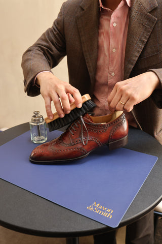 Always having problems keep the table clean while polishing your shoes? Our very own shoe polishing mat is probably the most practical way to keep your shoe shine routine neat and tidy.